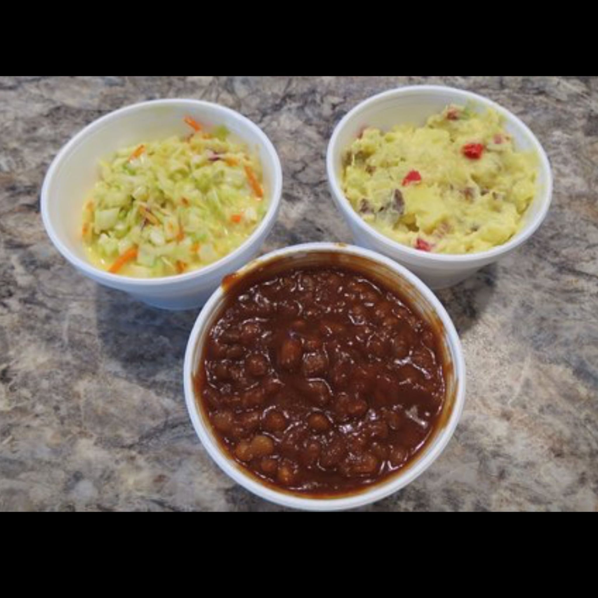 Baked Beans, Slaw, Potato Salad, Turnip Greens, or Mac-N-Cheese
